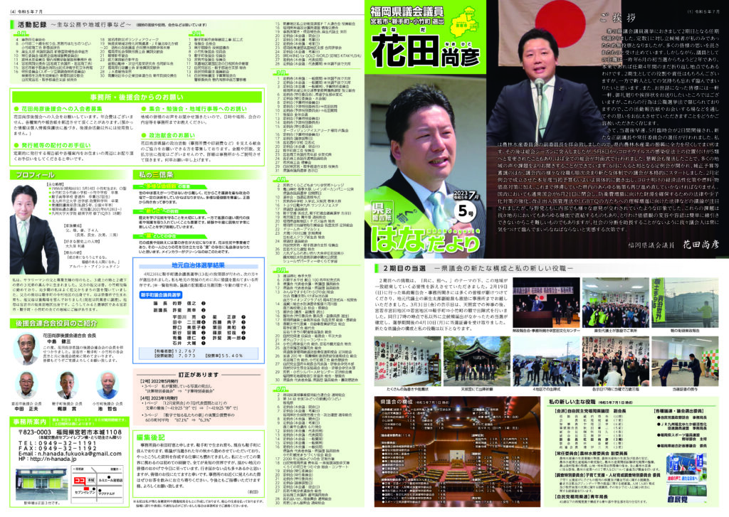 県政報告紙 はなだより5号を発刊しました。 2023 9/28 お知らせ 2023年7月31日2023年9月28日 お知らせ 福岡県議会議員 花田尚彦オフィシャルサイトを公開しました。 県政報告紙 はなだより6号を発刊しました。 関連記事 県政報告紙 はなだより10号を発刊しました。 県政報告紙 はなだより9号を発刊しました。 県政報告紙 はなだより8号を発刊しました。 県政報告紙 はなだより7号を発刊しました。 県政報告紙 はなだより6号を発刊しました。 福岡県議会議員 花田尚彦オフィシャルサイトを公開しました。 2023/02/19 第2回 県政報告会及び事務所開きのご案内 県政報告紙 はなだより4号を発刊しました。
